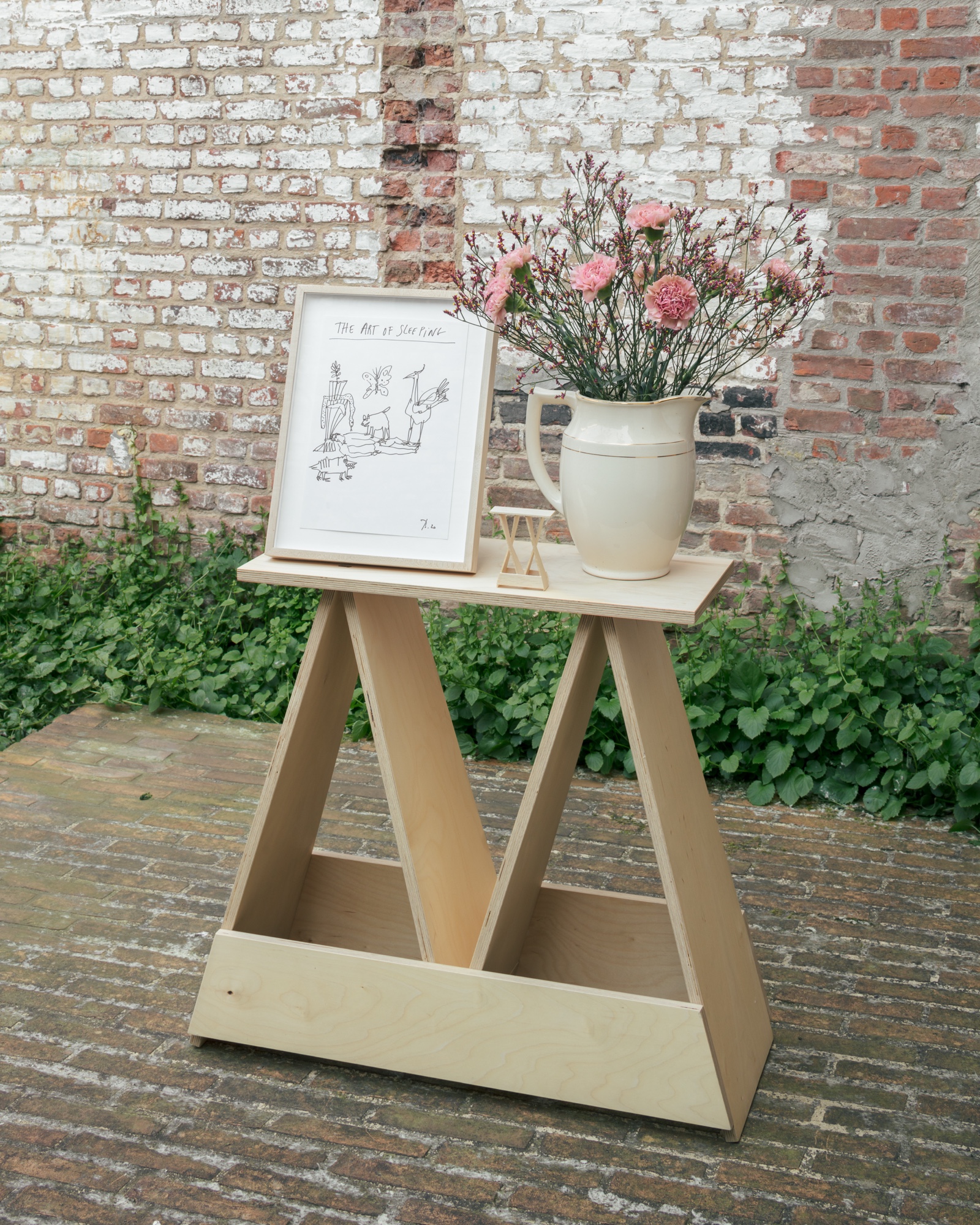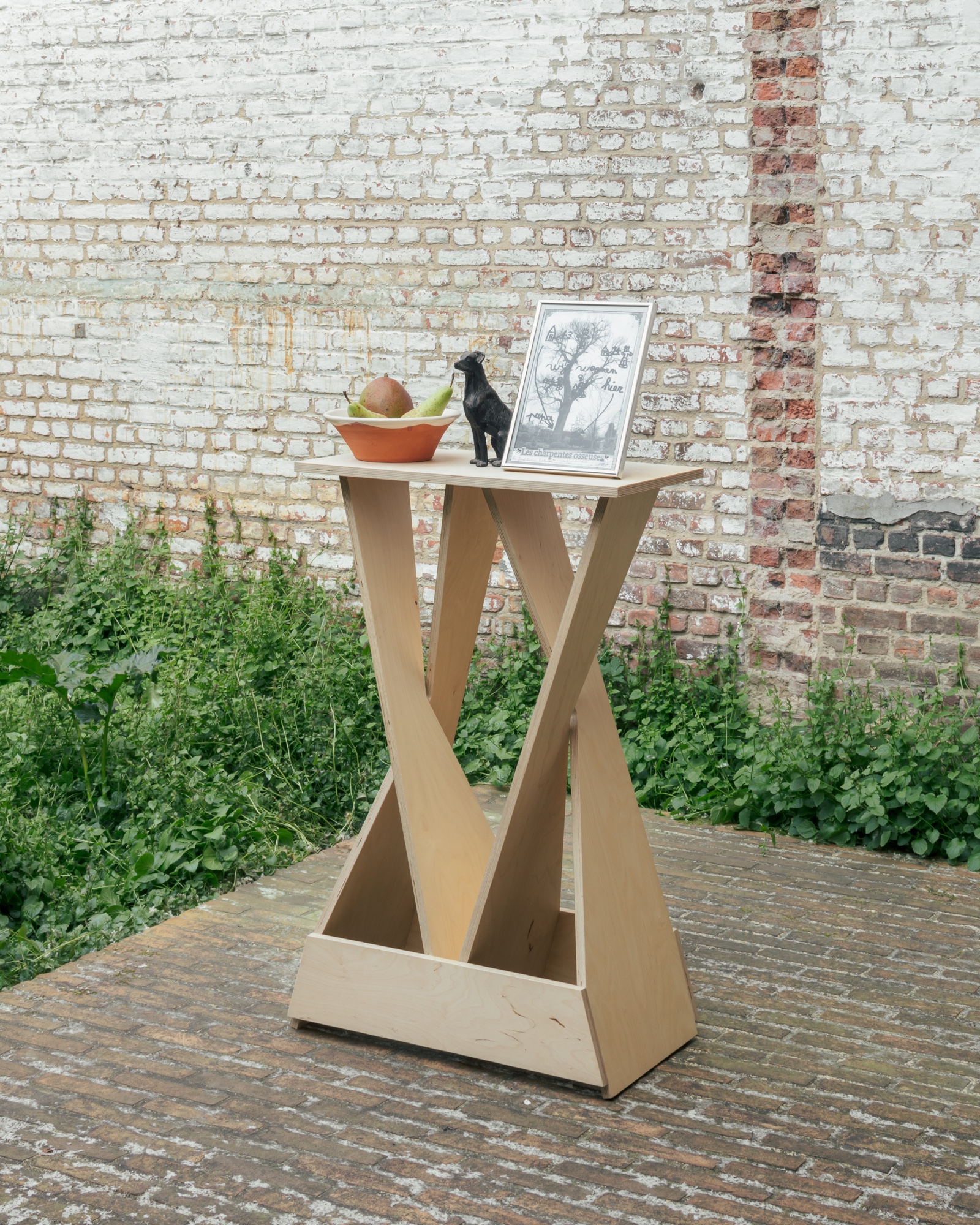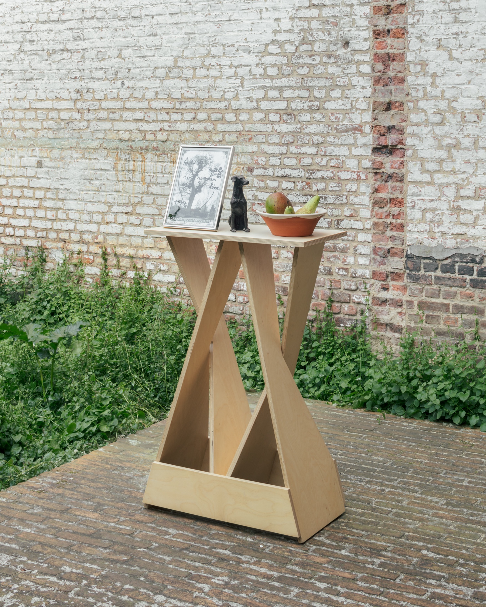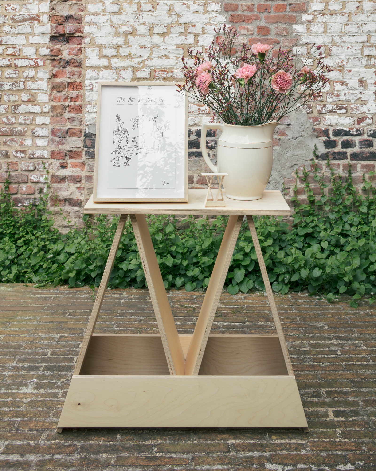 Deze consoles in multiplex, ontworpen voor de tentoonstelling Find Myself a City to Live in en voor huiskamers, zijn verwanten van de werktafel Madeleine. Multiplex of ander plaatmateriaal kan als hedendaags meubelmateriaal zowel structuur als draagvlak, zitvlak, tafelblad zijn. Het maakt meubels uit één materiaal mogelijk. Dat is het leidende principe van onze multiplex meubilair.